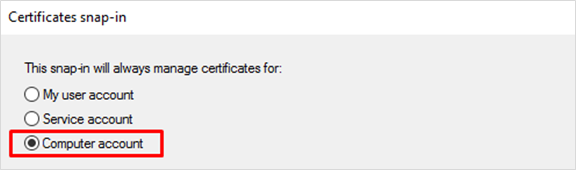 W oknie Przystawka Certyfikaty, wybierz Konto komputera, a następnie kliknij Dalej.