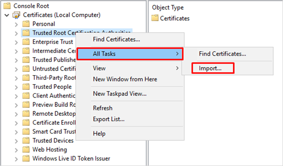 Aby dodać certyfikat do Zaufanych głównych urzędów certyfikacji, wykonaj następujące kroki: