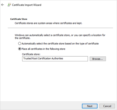 Na stronie Magazyn certyfikatów, kliknij Dalej.