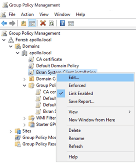 - Kliknij prawym przyciskiem myszy utworzony obiekt zasad grupy i wybierz Edit.