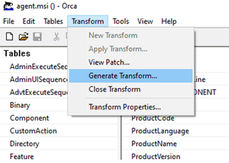 Aby utworzyć plik konfiguracyjny za pomocą Microsoft Orca, wykonaj następujące czynności: