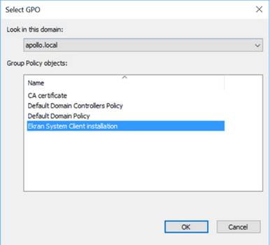 - W oknie Select GPO wybierz utworzony obiekt zasad grupy, a następnie kliknij OK.