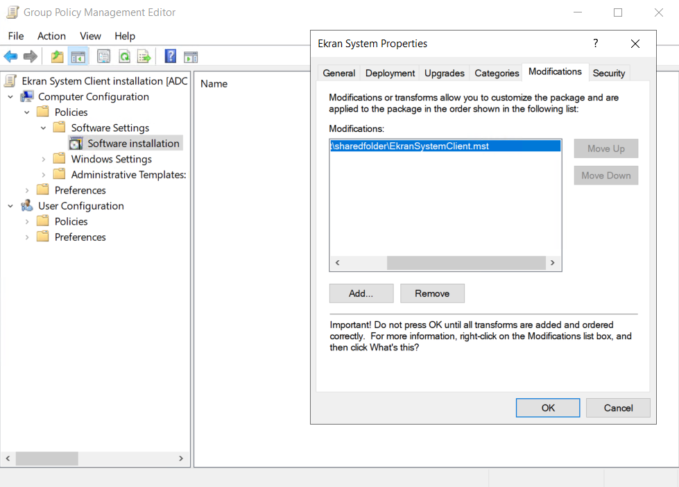 Instalowanie agentów monitorowania Syteca On-Premises dla systemów operacyjnych z rodziny Windows za pomocą zasad grupy przy użyciu pliku MSI