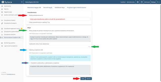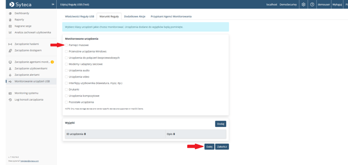 Konfiguracja reguły monitorowania urządzeń USB w Syteca SaaS to szybki i prosty proces. Dzięki niej możesz skutecznie monitorować podłączane urządzenia, automatycznie podejmować działania oraz zwiększyć poziom bezpieczeństwa danych w Twojej organizacji.