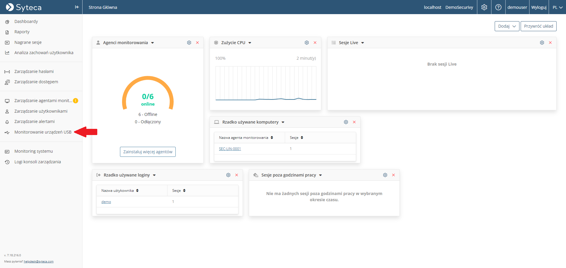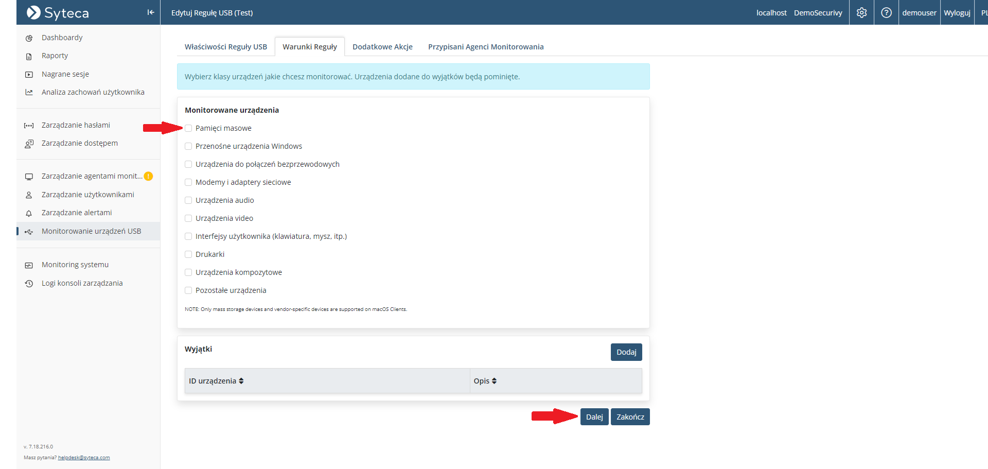 Jak monitorować urządzenia USB w Syteca SaaS?