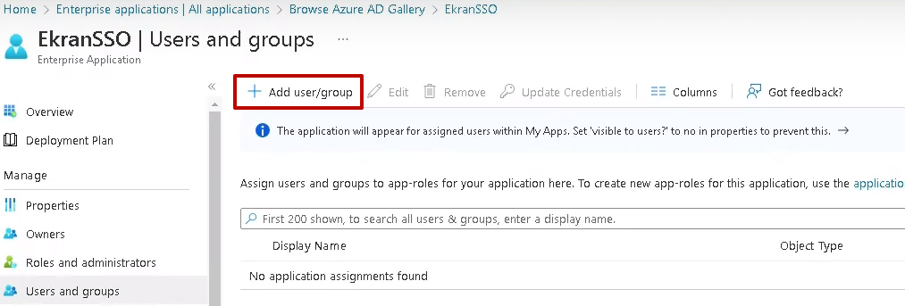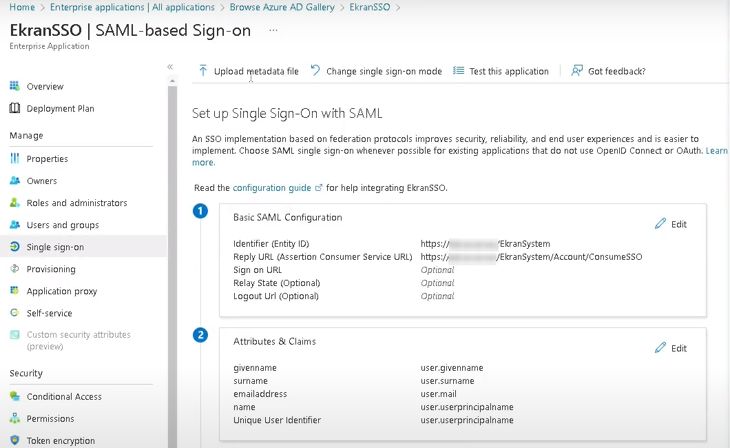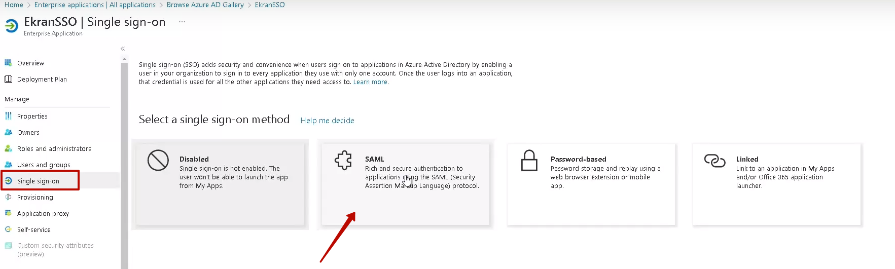 Home > Enterprise applications > All Applications > Browse Azure AD Gallery > EkranSSO
