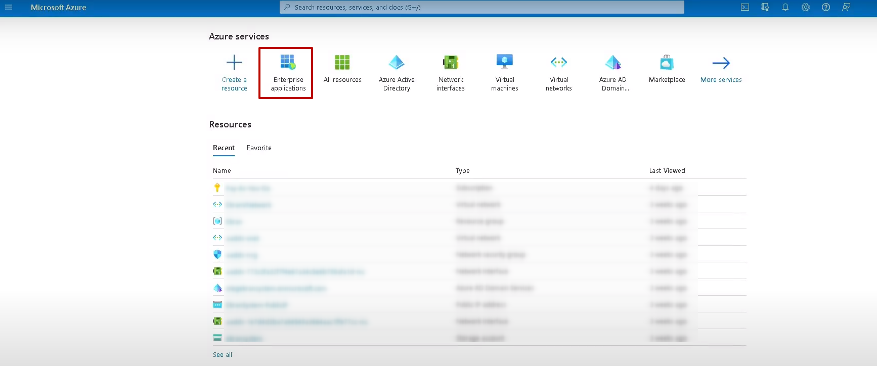 Na stronie głównej platformy Azure kliknij Enterprise applications (Aplikacje korporacyjne).