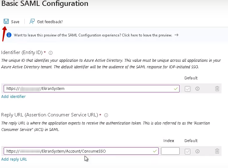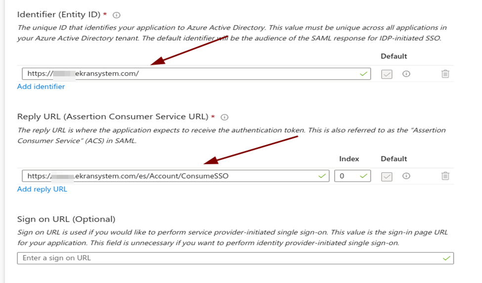Reply URL (Assertion Consumer Service URL): Wprowadź adres odpowiedzi: