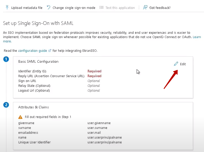 Na stronie Set up Single Sign-On with SAML kliknij przycisk Edit (Edytuj).