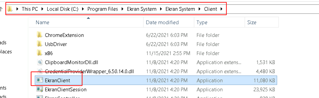 - Otwórz folder, w którym zainstalowano agenta monitorowania Syteca (domyślnie: C:\Program Files\Ekran System\Ekran System\Client) i zmień nazwę pliku EkranClient1.exe na EkranClient.exe.