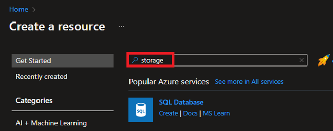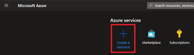 Na stronie głównej kliknij Create a resource.