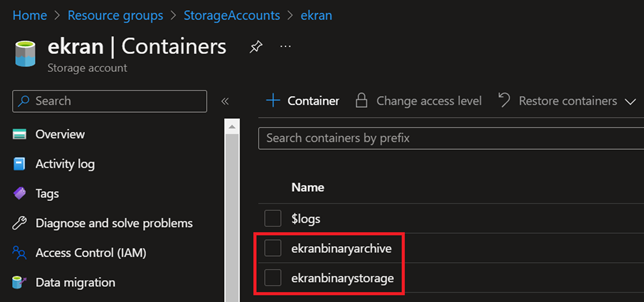 Uwaga: Jeśli planujesz korzystać z funkcji archiwizacji i czyszczenia (Archive & Cleanup), utwórz drugi kontener w ten sam sposób.