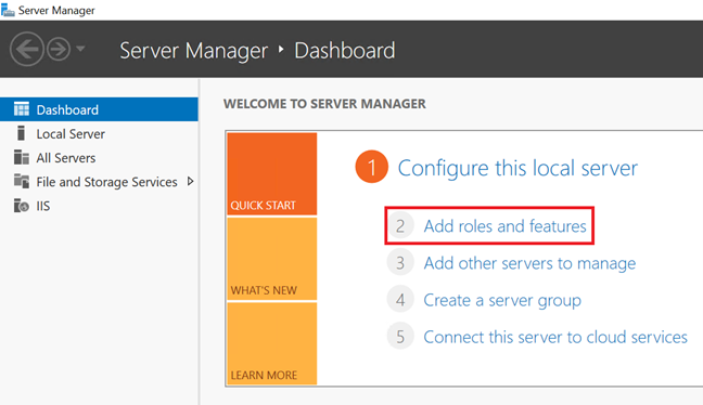 Otwórz Server Manager i wybierz Add roles and features.
