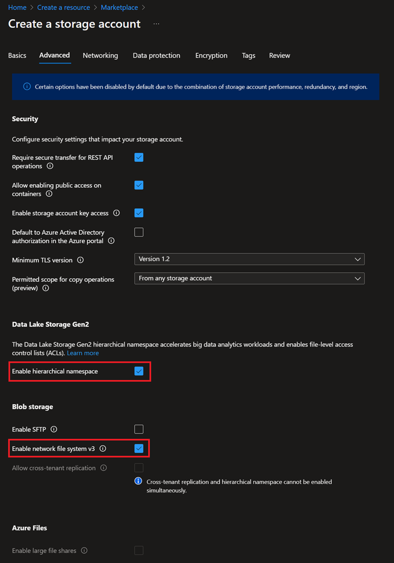 1. Tworzenie konta magazynu Azure z obsługą protokołu NFS 3.0 i hierarchicznej przestrzeni nazw