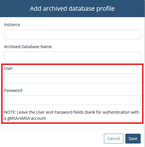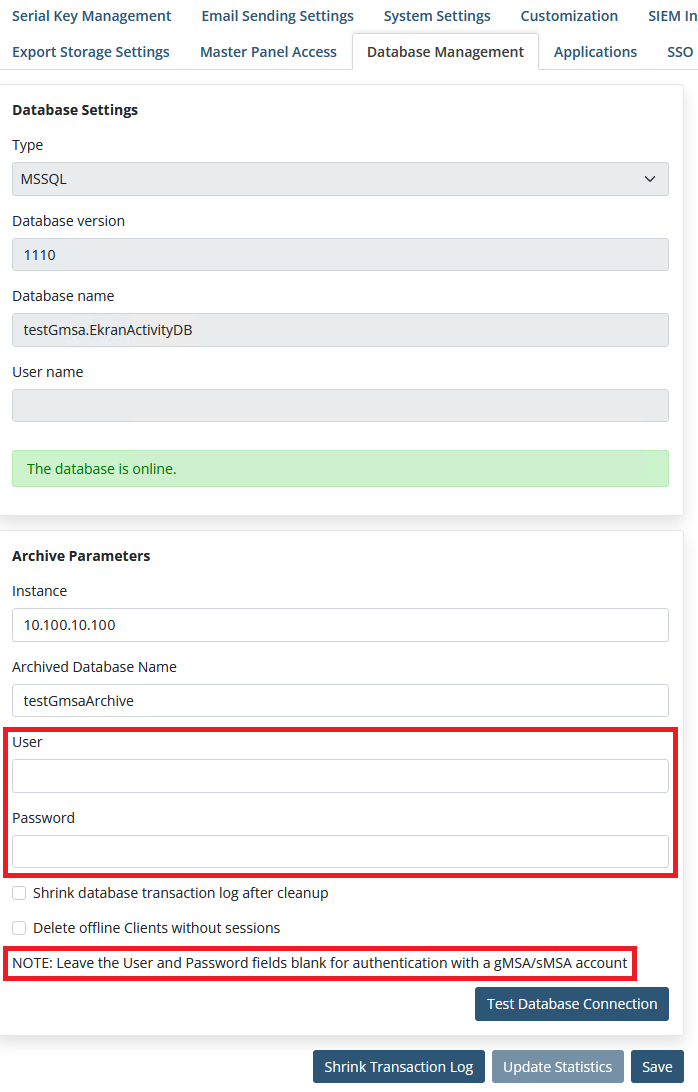 Aby móc korzystać z konta gMSA, skonfigurować bazę danych (i parametry archiwum), wykonaj następujące czynności: