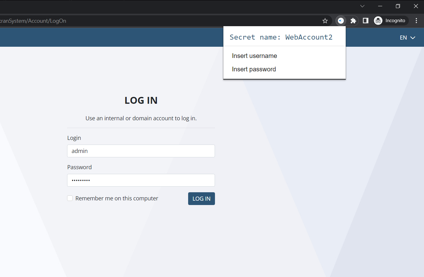 Jeśli logowanie do konta Web nie działa automatycznie, można skorzystać z rozszerzenia Syteca do Google Chrome.