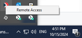 Kliknij prawym przyciskiem ikonę agenta monitorowania w zasobniku systemowym Windows i wybierz Zdalny dostęp, lub kliknij dwukrotnie ikonę skrótu Syteca Remote Access na pulpicie.