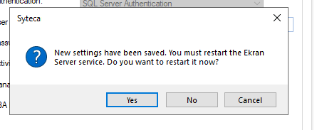 W wyświetlonym oknie potwierdzenia kliknij Yes – Serwer Aplikacji Syteca zostanie automatycznie uruchomiony ponownie.