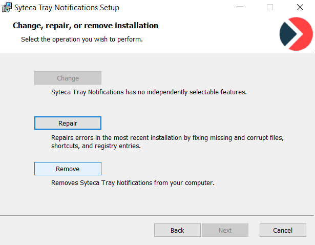 Uruchom plik instalacyjny Syteca_TrayNotifications_<build_number>.msi.