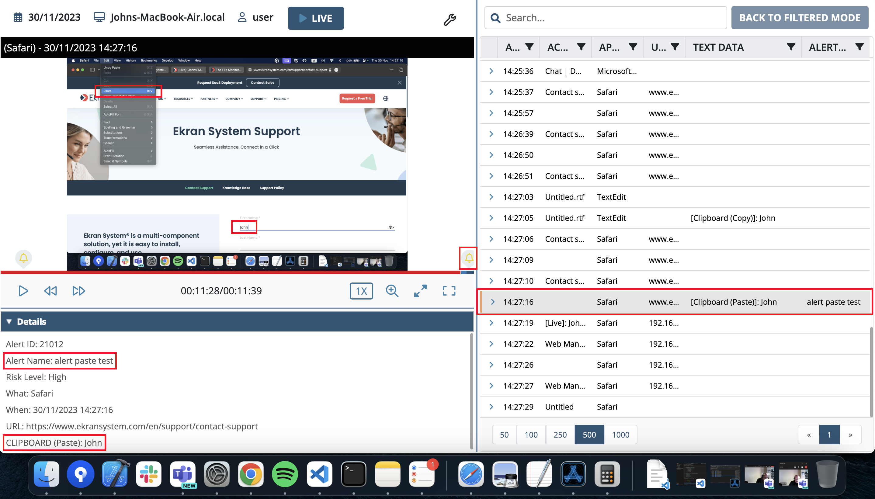 Podgląd stanu bezczynności (macOS) w Syteca On-Premises