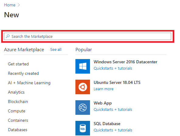 Krok 2. Kliknij przycisk Create a resource na stronie głównej.