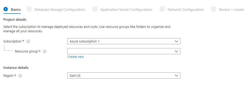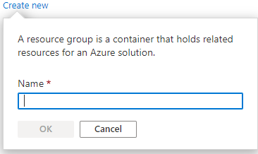 Uwaga: Nie można używać istniejących grup zasobów. Kliknij Create new, podaj unikalną nazwę grupy i zatwierdź.