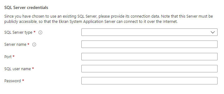 W przypadku MS SQL lub PostgreSQL, zostanie wdrożona maszyna wirtualna. Określ: