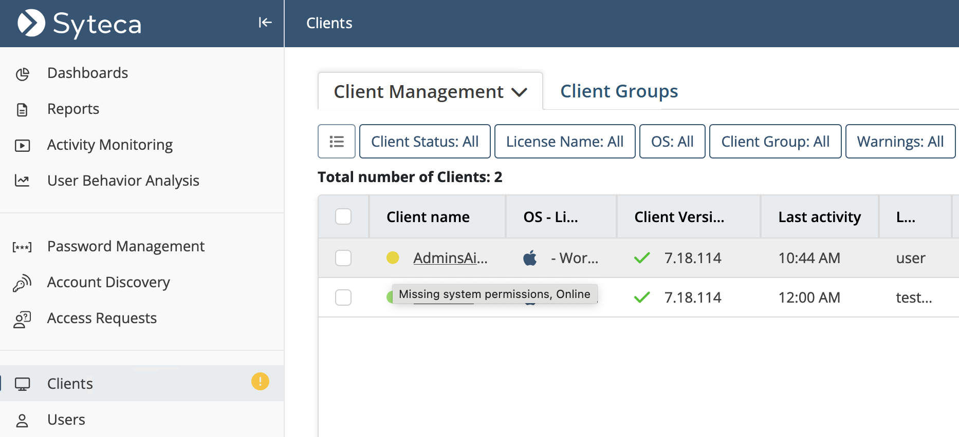 Status agenta monitorowania dla systemów z rodziny Apple MaOS po aktualizacji Syteca On-Premises