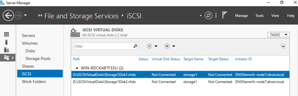 - Otwórz Server Manager na serwerze z zainstalowaną rolą iSCSI Target Server