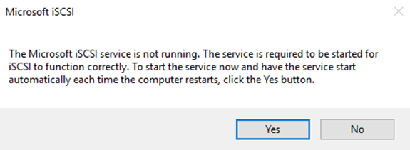 - Kliknij przycisk Tak, aby uruchomić usługę iSCSI.