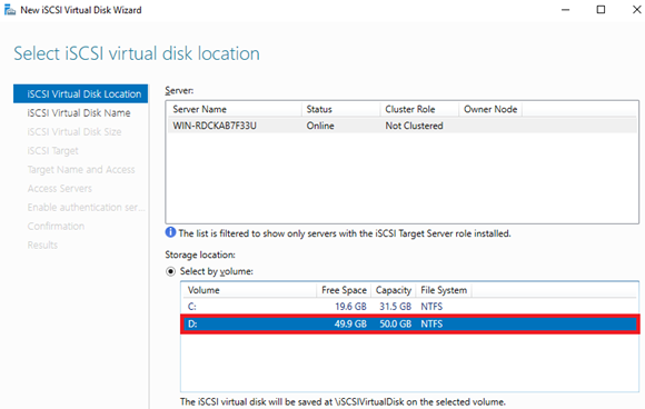 - Wybierz iSCSI, a następnie kliknij Aby utworzyć wirtualny dysk iSCSI, uruchom Kreatora nowego wirtualnego dysku iSCSI.