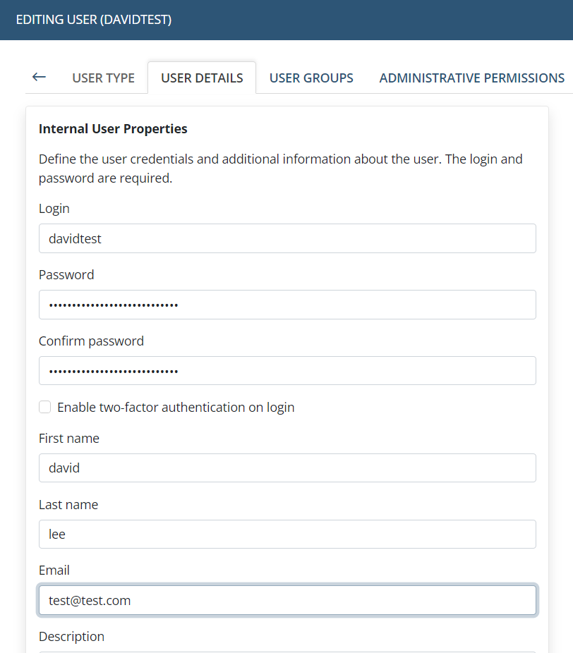 Podczas edycji lub dodawania użytkownika wewnętrznego, na zakładce „Szczegóły użytkownika”, upewnij się, że został podany jego adres e-mail.
