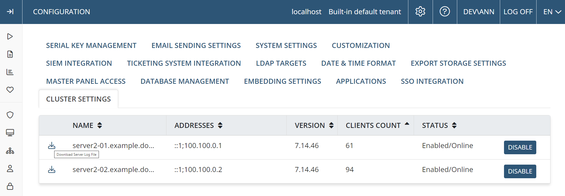 Zarządzanie klastrem zawierającym wszystkie instancje Serwera Aplikacji przy użyciu Konsoli Zarządzania Syteca On-Premises