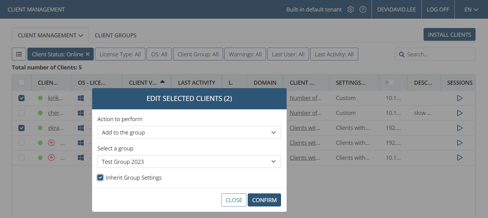 - Nadania dziedziczenia ustawień z grupy agentów.